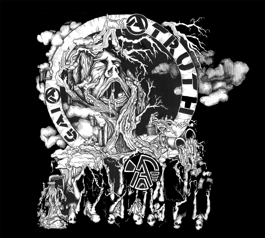 Artwork by Sara Sotaa, inside poster by Ashley Smith. All songs produced by the (A)TRUTH collective Simon Santana, Chris Erazo, Martin Silva, Javier Florencia, Roman Medina
