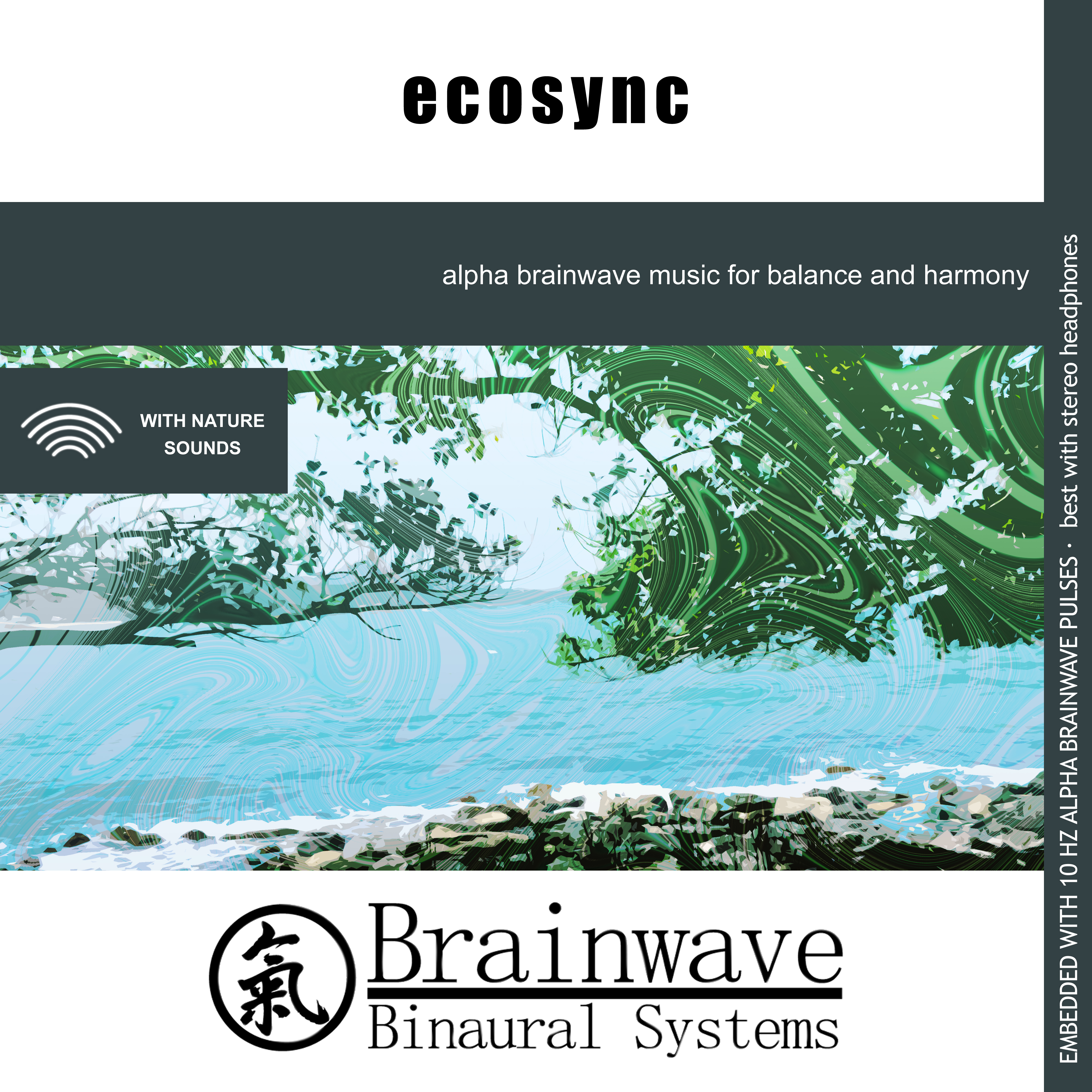 The Ecosync album has 40 minutes of slow tempo ambient music together with Nature elements like wind, thunder, rain, birds and babbling brook sounds. It was designed to help you relax and balance your mind with 10 Hz Alpha stimulation. The sounds of nature are great for relaxation, sound masking, sleeping and meditation. Many adults use nature sounds to create a calm and peaceful atmosphere to escape from the stresses of everyday life.