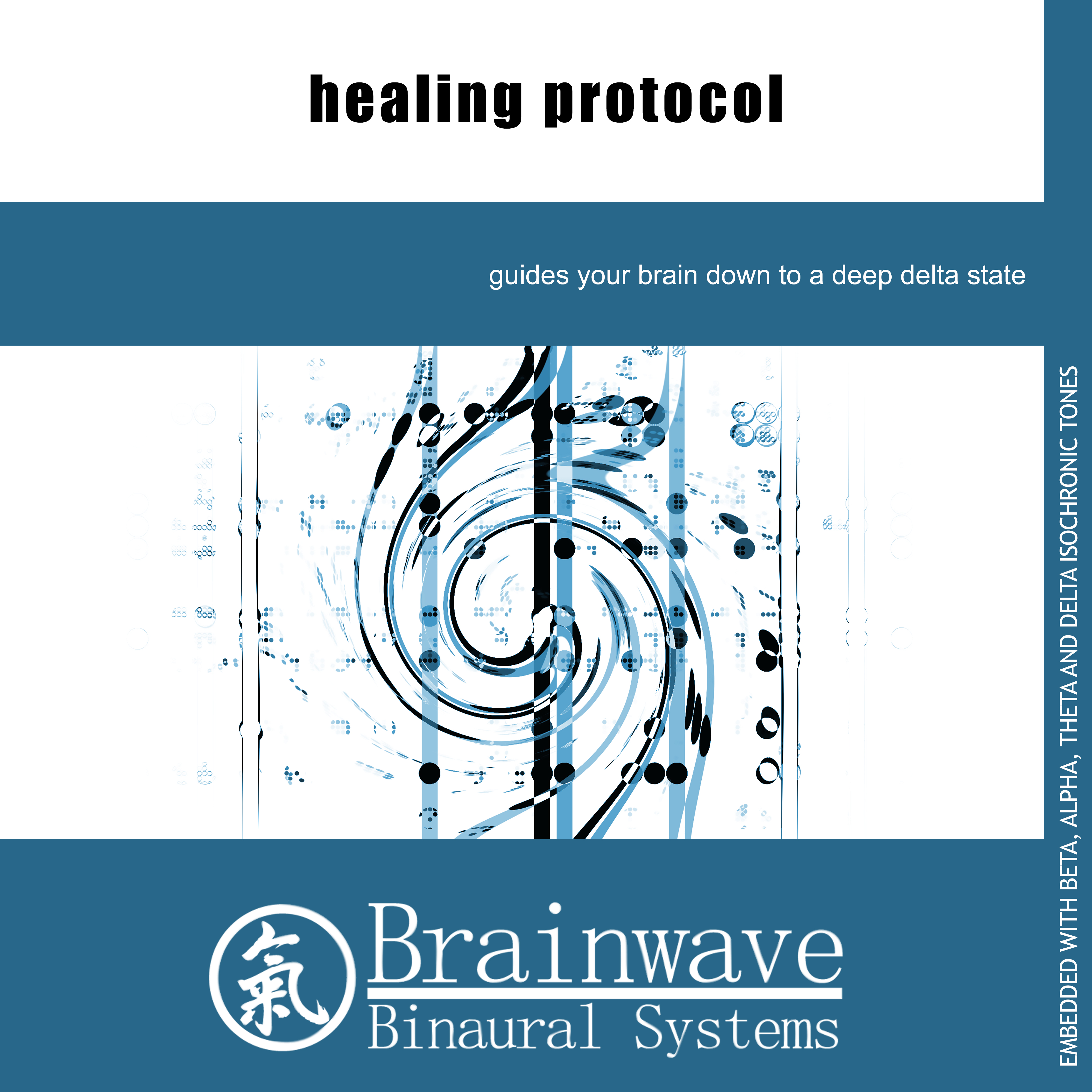 The Healing Protocol album by Brainwave Binaural Systems was designed to guide your brain down to a Delta state (similar to deep sleep) where your body naturally starts repairing and healing itself. It is embedded with Beta, Alpha, Theta and Delta Isochronic Tones.