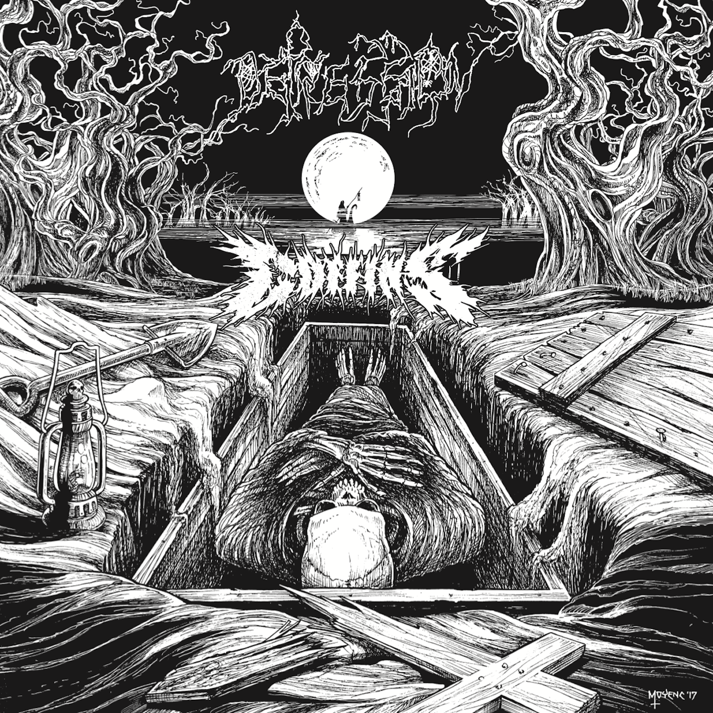 Capped off by Chris Moyen's characteristically morbid cover artwork, COFFINS and DEPRESSION take you into a tomb of darkness, death, gore, and grime with this crucial new split album!