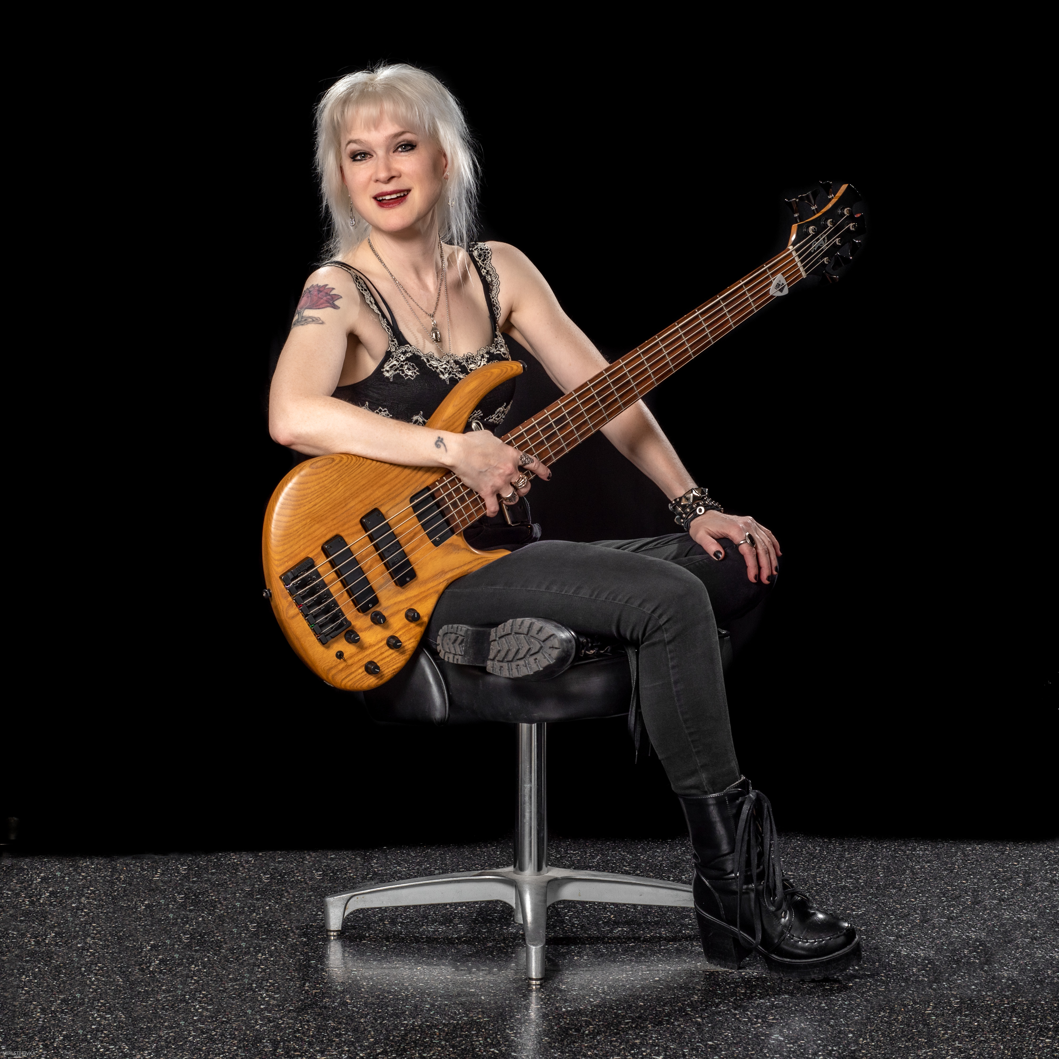 Lisa Mann plays Tobias & Warwick basses, and uses Bartolini Pickups and D'Addario strings