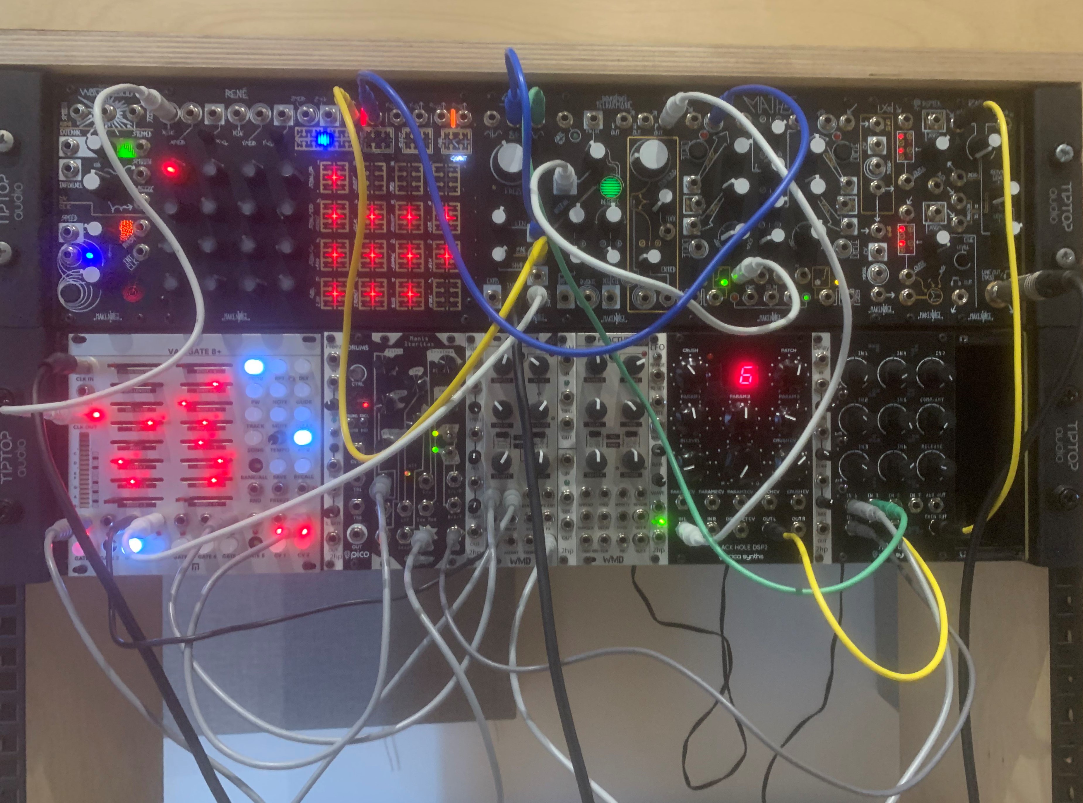 "Barren" is the opposite concept, using only modular hardsware and no input mixers to synthesise patches that created arps and atmospheres with a 15/6 time signature, before routing these patches to react with feedback loops from a no-inpout mixer which turned into endless hours of noise distortion and tones.