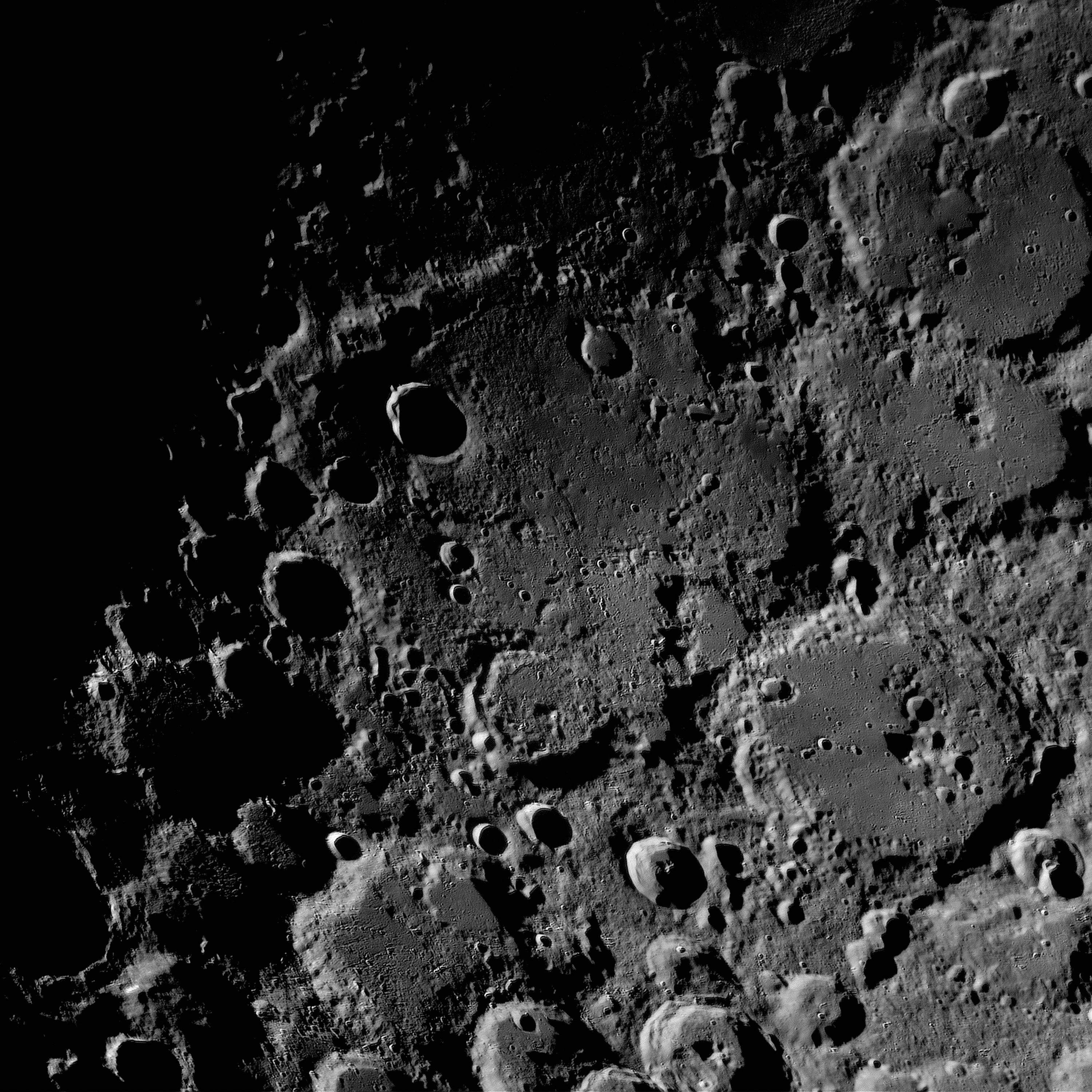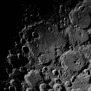 - Cover image of the Moon's cratered surface by Pfirter. This close-up view highlights the intricate details of the lunar surface, where craters and basins, formed by countless impacts over billions of years, create a rugged, pockmarked landscape. -