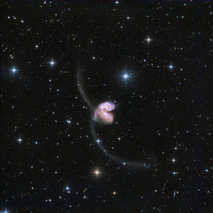 - Cover image of the Antennae Galaxies by Pfirter. These are two interacting galaxies in the Corvus constellation. They are experiencing a galactic collision and their nuclei are coming together to form a supergalaxy. -