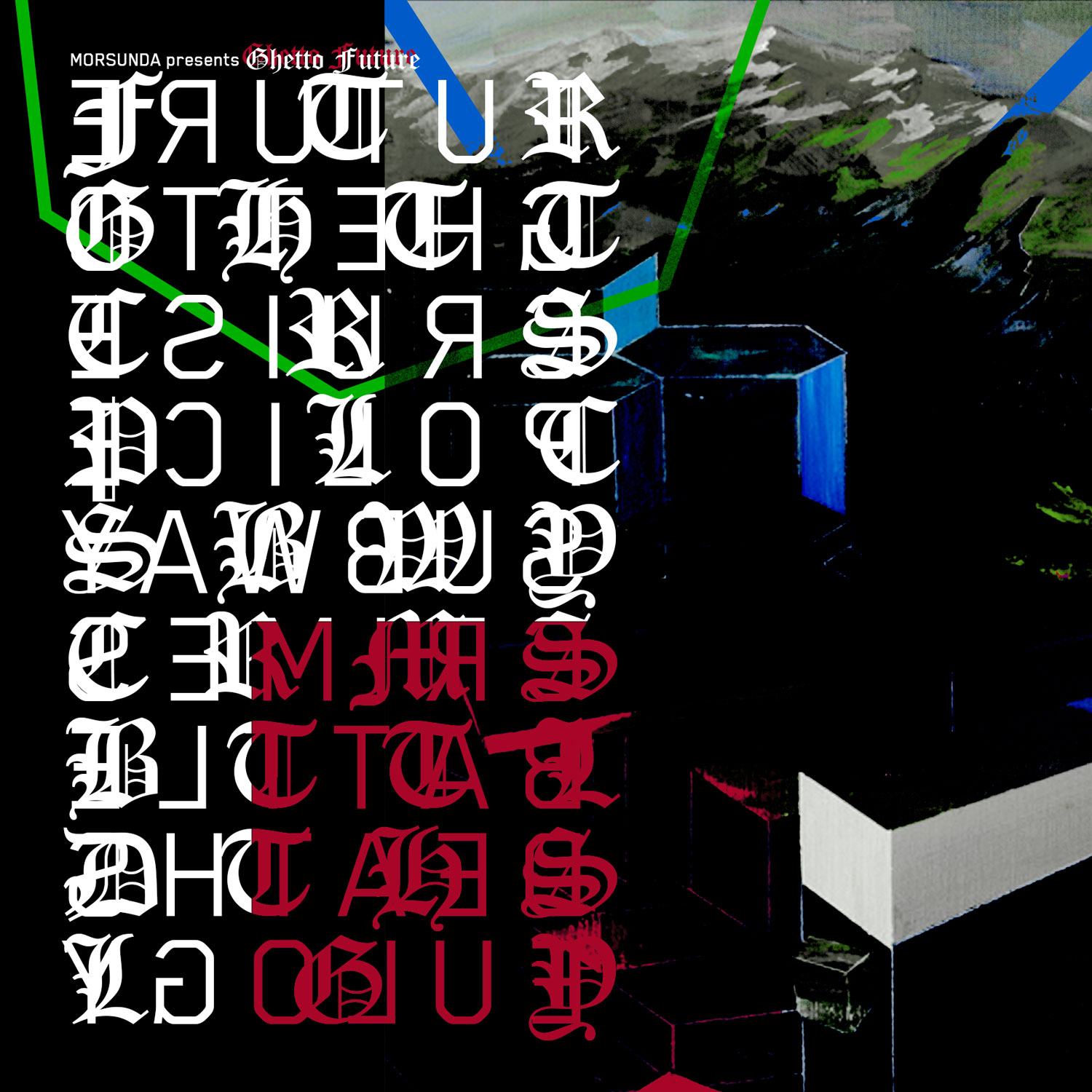 "Ghetto Future" is a cyberpunk slacker soundtrack to the decayed, pollution-filled dystopia of tomorrow. Featuring blown out minimalist rhythms coupled with sounds alien & robotic, it's a scathing and ominous interpretation of futurist acoustics. Equal parts doomtronic, dark ambient, glitch, and noise, "Ghetto Future" straddles between repetitious sterility and human error, with the beats themselves sounding almost drunk and slurred on an unknown chemical concoction. Dubbed-out snare hits weave in and out of slimy, subsonic bursts of distorted low-end that drifts through the stereo spectrum like a thick, viscous liquid. A distinct lack of melody, harmony, theory, or anything that feels organic reflects a drugged-out humanity hazily moving through a crushing existence.