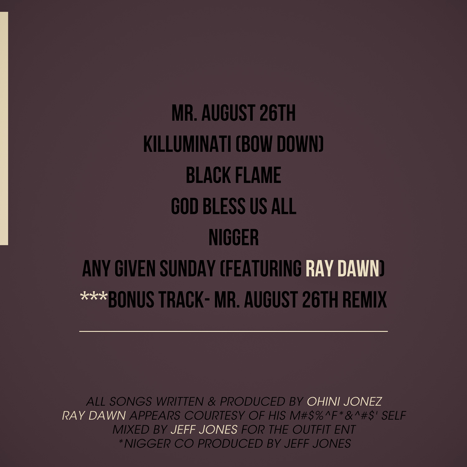 Mixed by Jeff Jones for The Outfit Ent.