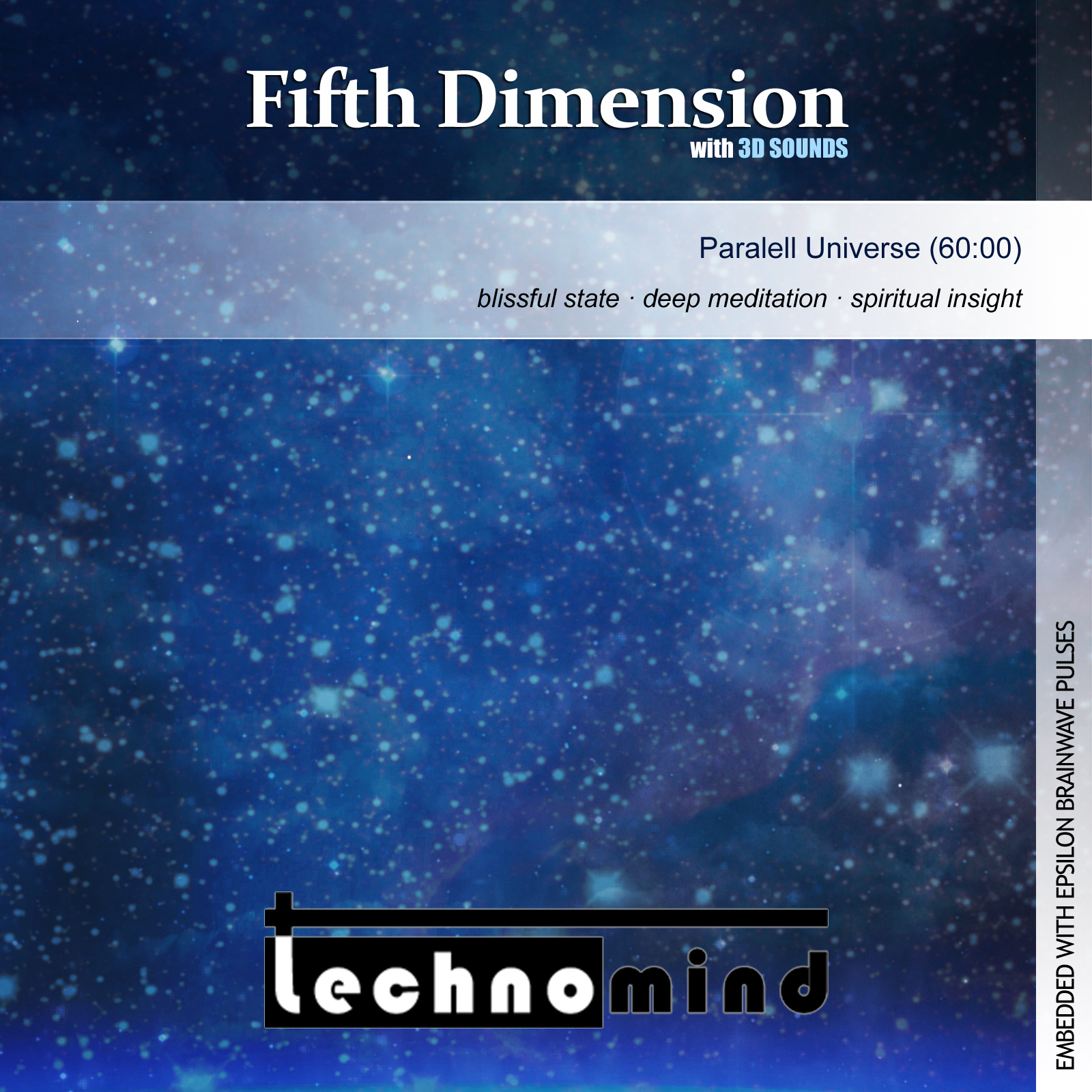 The Fifth Dimension album is a sound trip to another dimension. It has a soothing and airy background music with 3D sound effects and is embedded with Epsilon brainwave pulses. These very slow brainwaves are associated with a expanding and blissful state of pure insight.