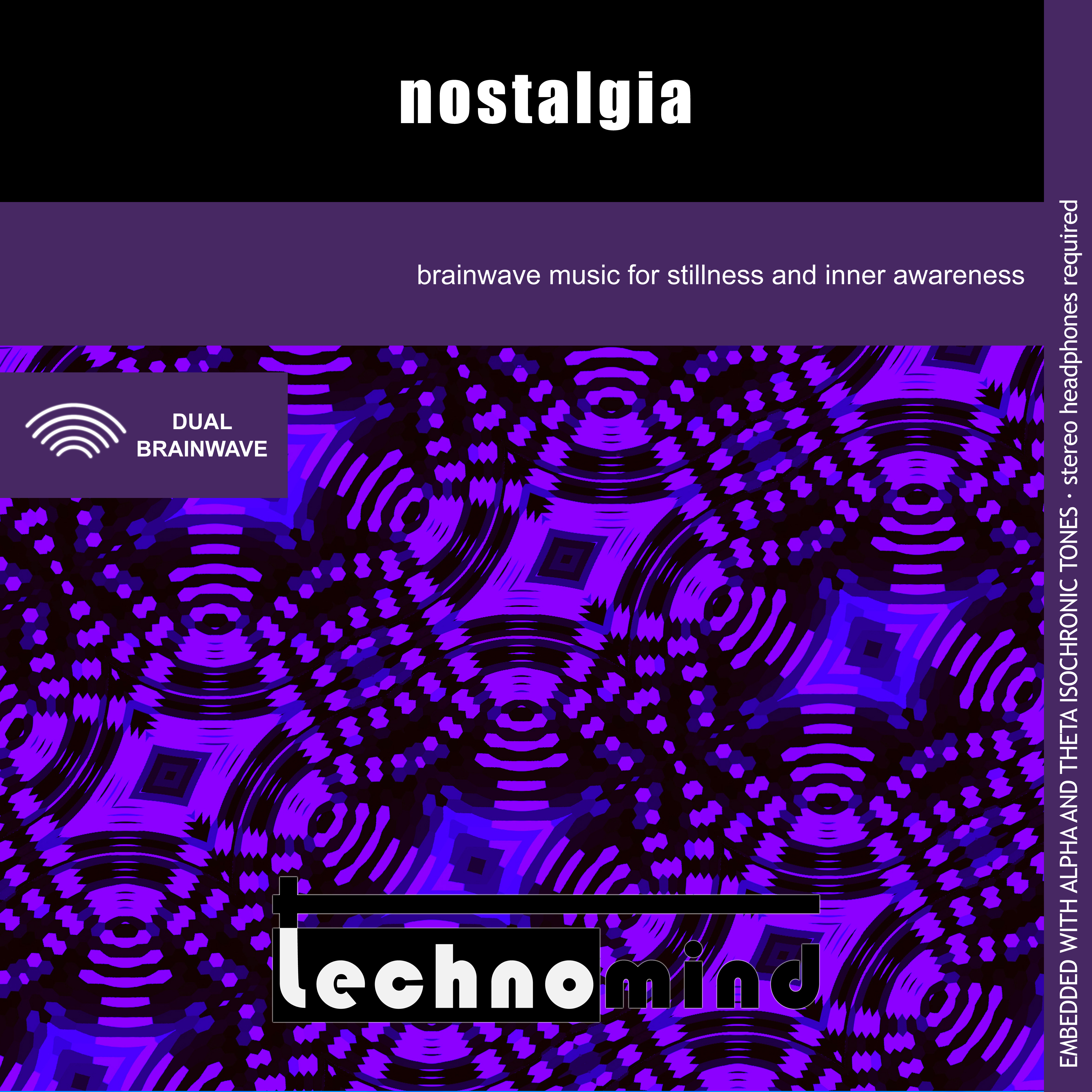 The Nostalgia album by Technomind has 30 minutes of soothing and nostalgic ambient music together with dual brainwave stimulation: 10 Hz Alpha frequencies are sent to the right ear (left brain hemisphere) and 7.83 hz Theta frequencies (Schumann Resonance) are sent to the left ear (right brain hemisphere). It was designed as a meditation tool to help you relax, achieve stillness and enhance your inner awareness.
