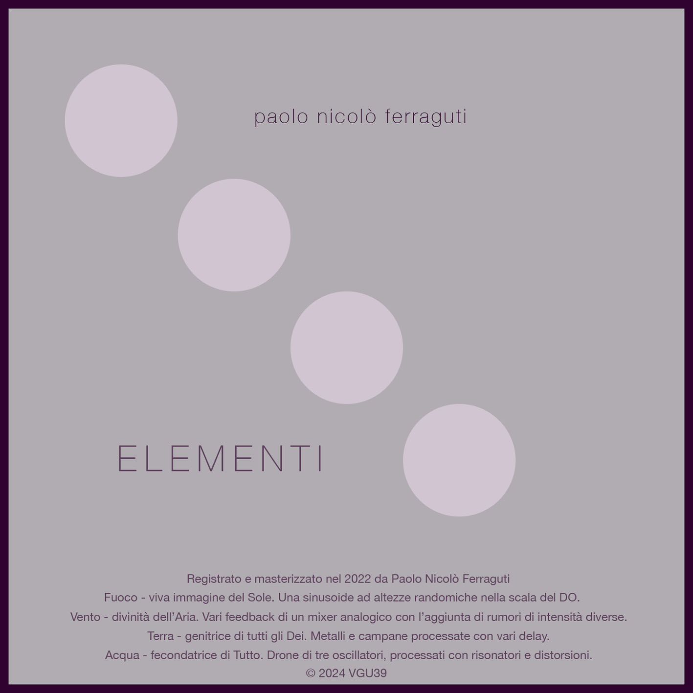 Registrato e masterizzato nel 2022 da Paolo Nicolò Ferraguti.