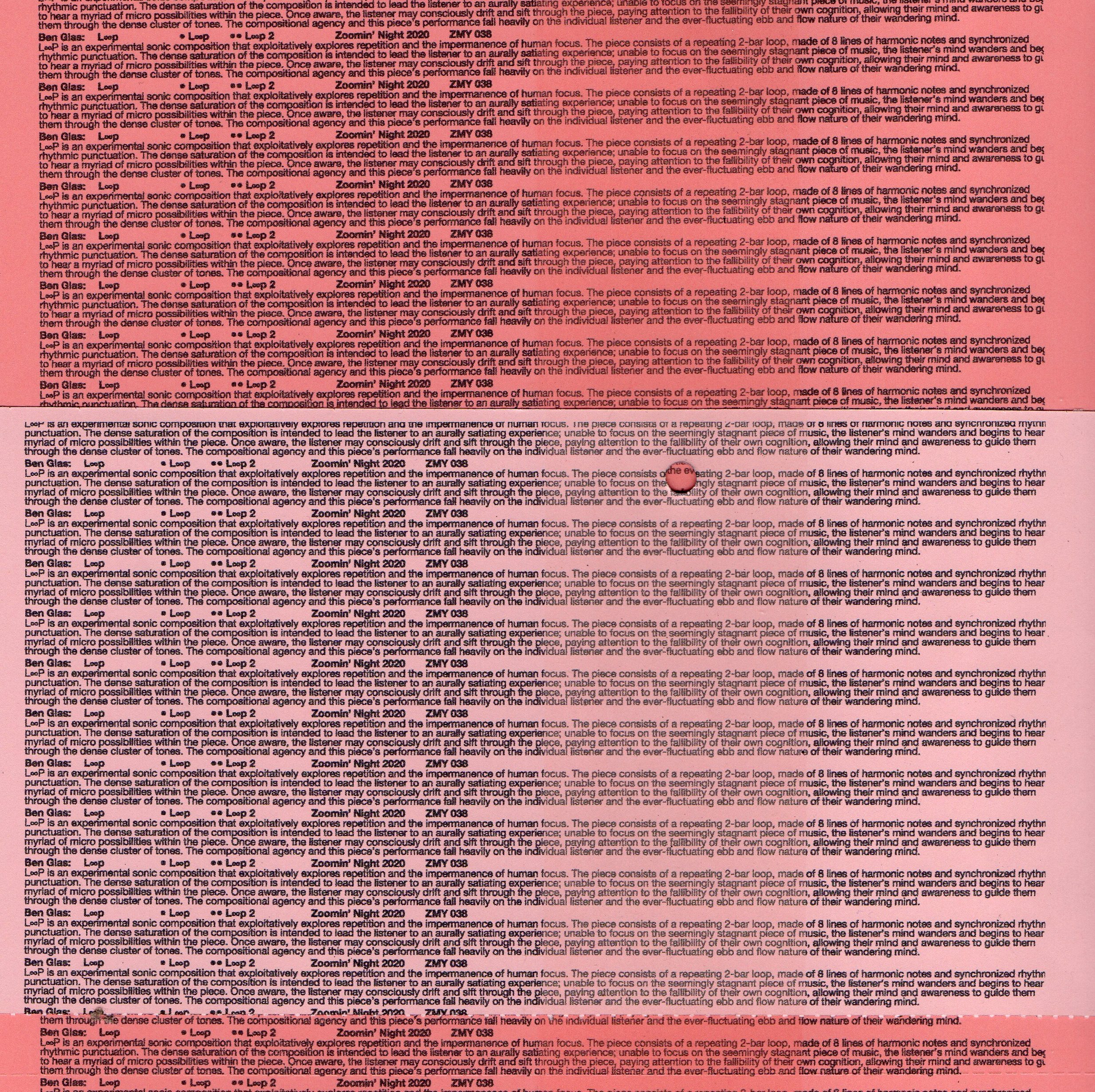 For physical products, L∞P was present as endless loop-tape cassette produced by Zhu Wenbo. Each cassette is 6 seconds around in each side, super short but could be played to the end of the world. Because of the joints on loop-tape, it sounds totally different with digital music.
